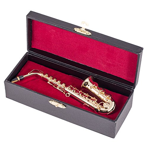 Gold Saxophone Music Instrument Miniature Replica with Case - Size 6.5 in.