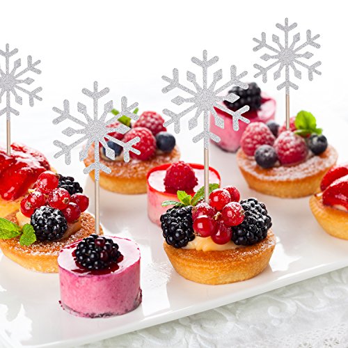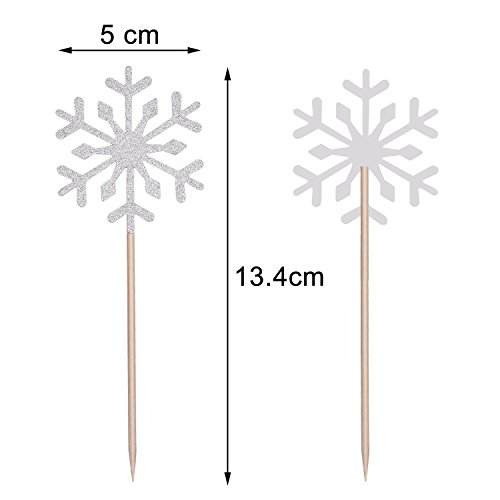 Snowflake design: the cupcake toppers are snowflake design with a stick, which are also good for cupcakes, cakes, ice cream, meat, cheese and any dish you want to dress up