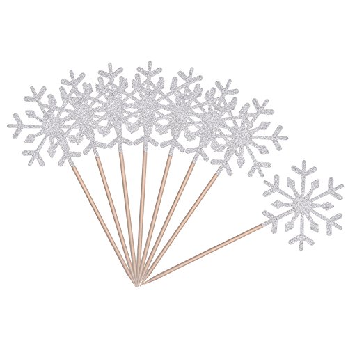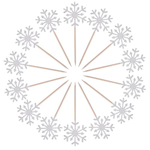 Frienda 30 Pack Snowflake Cupcake Toppers Snowflake Decorations for Kids Birthday Party Christmas Themed Party Baby Shower Wedding Cake Decoration (Silver)