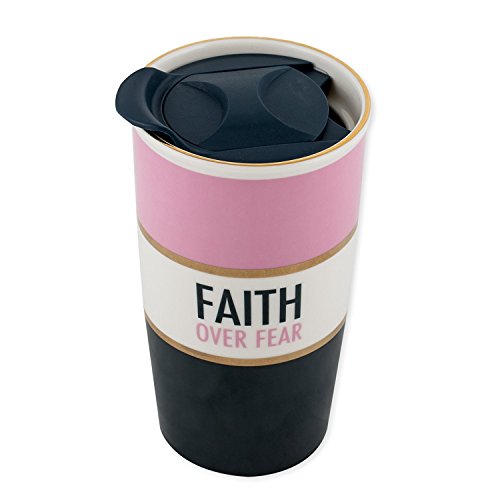 Pray More He Listens Pink and Black Ikat 13 Oz. Ceramic Mug with Lid and Spiral Bound Notebook Set of 2