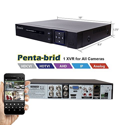 -. Feature : Vonnic 8 channel Full 1080p HD 5-in-1 XVR, Supports: HDCVI/HDTVI/AHD/IP/Analog / Includes 4pcs 3.6mm 1080p HDTVI Security Cameras, Along with 18 Microcrystalline LEDs, Allow Each Camera to See Up to 100ft(30m) in Darkness / Email Notification & Mobile Push Alerts when Motion Detection,Free Mobile Apps for Live View and Playback on Smartphone / Support USB port Back up , gives you the easiest option of backing up and transferring your video footage to a USB flash drive / Easy to setup, comes with manufacturer warranty and tech support