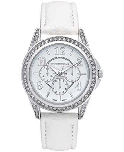 -. Feature : CHARTER CLUB SILVER-TONE FAUX LEATHER STRAP SILVER / WATCH / LEATHER STRAP