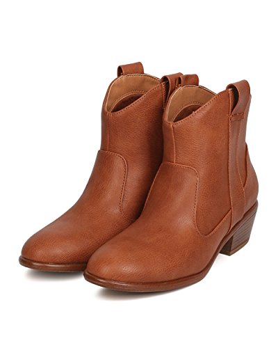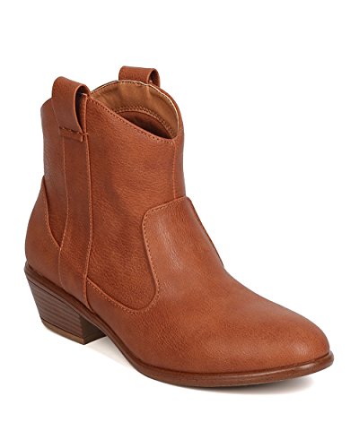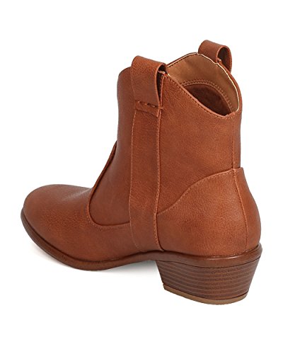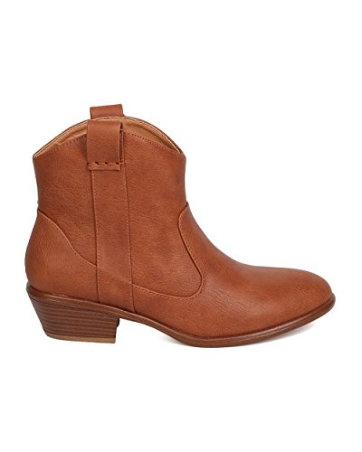 Women Leatherette Cowboy Bootie - Casual, Festive, Rodeo - Western Ankle Boot - GC78 By Wild Diva