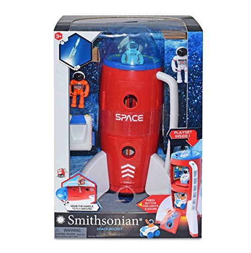 -. Feature : Rockets don't really explore space-they are only used to launch a spacecraft into space or send it back to earth / Most rockets are not reusable they burn up in space after just one use, but some newer rockets can be used again & again / It only take about 10 minutes for a rocket to launch a spacecraft from earth to space! but, that short ride takes a lot of fuel and energy! / 2 x "AA" 1.5V batteries included / Contents: 1 x space rocket, 2 x astronauts, 1 x Junior rover