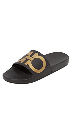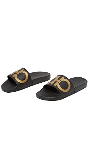 Binding : Apparel Product Description Salvatore Ferragamo Footwear Size Chart Indulge in a look of carefree cool when you slip into the Salvatore Ferragamo™ Groove Sandal. Synthetic upper. Large synthetic strap across vamp embossed with the iconic double Gancio logo at center. Slip on design. Open toe silhouette. Synthetic lining. Lightly padded synthetic footbed. Stacked synthetic sole. Made in Italy. This item may ship with an attached security tag. Merchandise returned without the original security tag attached or a damaged tag may not qualify for a refund. Measurements: Weight: 11 oz Product measurements were taken using size 45 (US Men's 11), width D - Medium. Please note that measurements may vary by size. 0