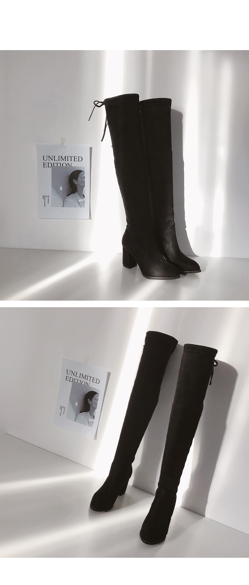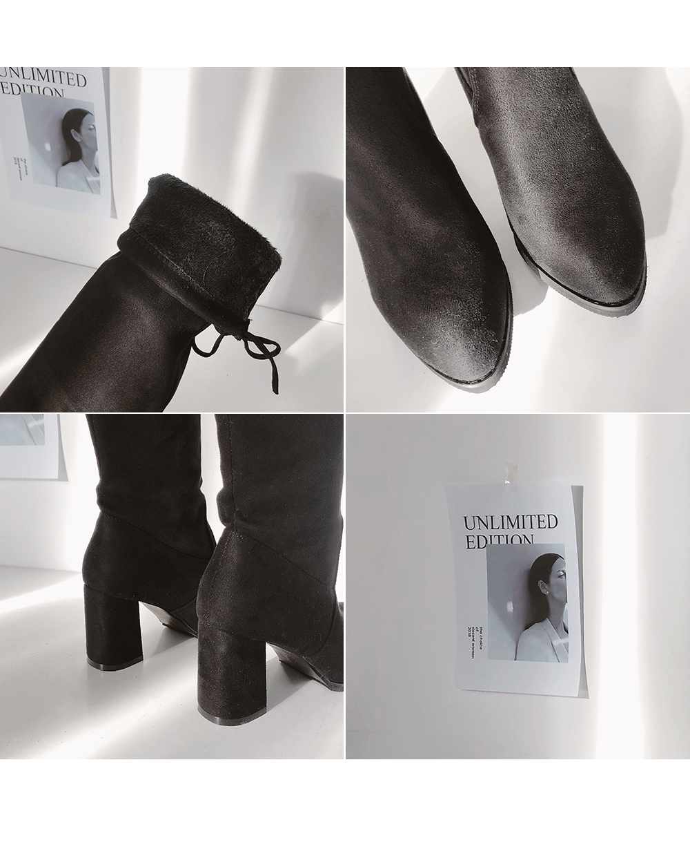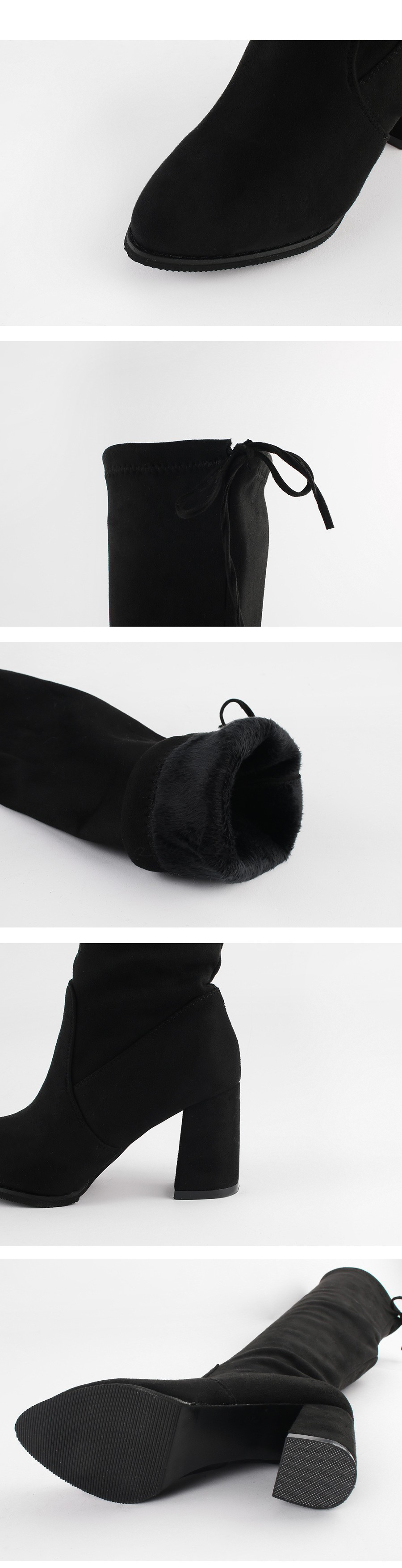 DETAILS - 소재 : 인조스웨이드 - 컬러 : black - 안감 : 전체털 - 피팅감 : 정사이즈 / 무게 : 보통인편 - 착화감 : 스판 소재로 편안해요 - 모델피팅 : 235