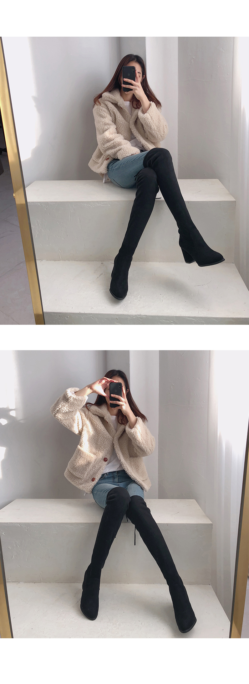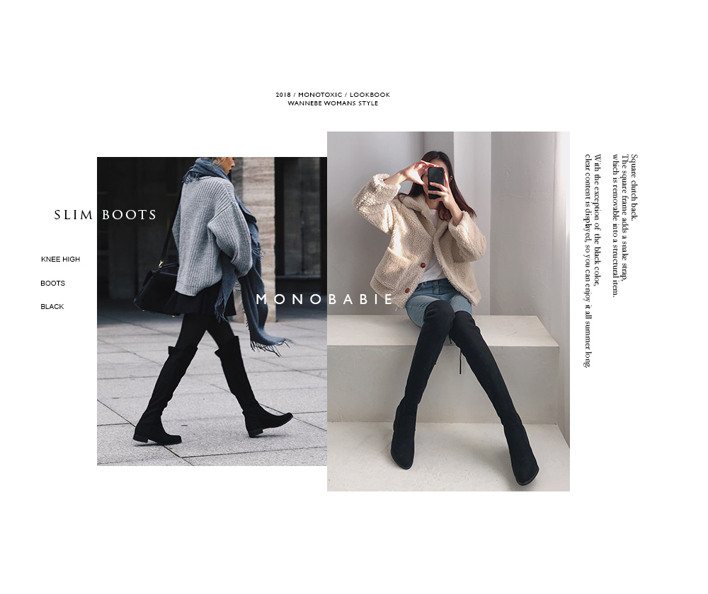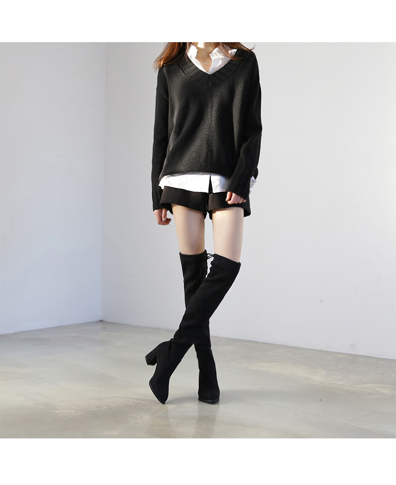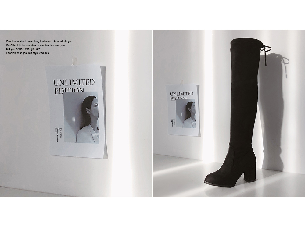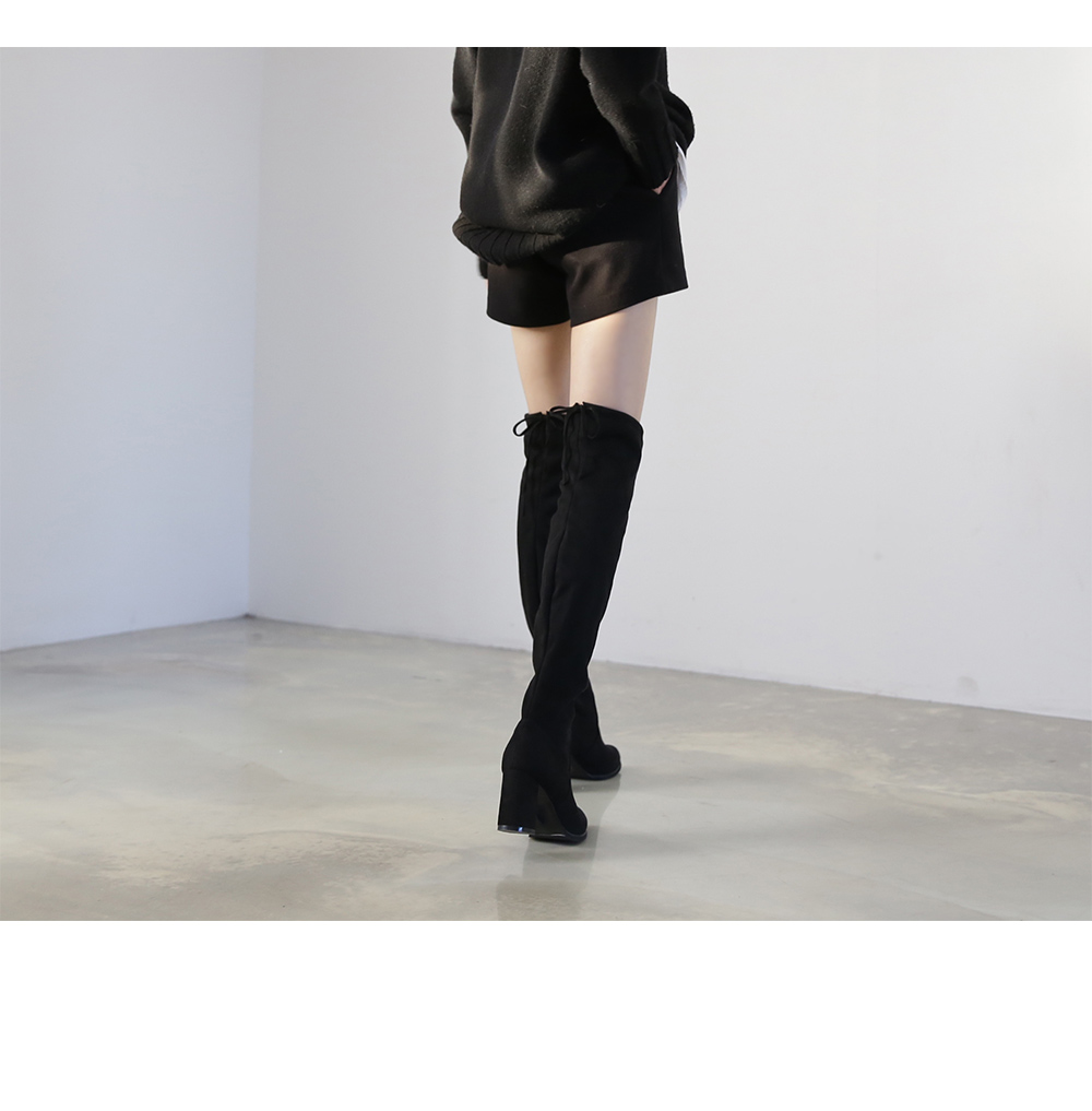 청키굽이 더해집 스웨이드텍스쳐의 오버니부츠입니다.