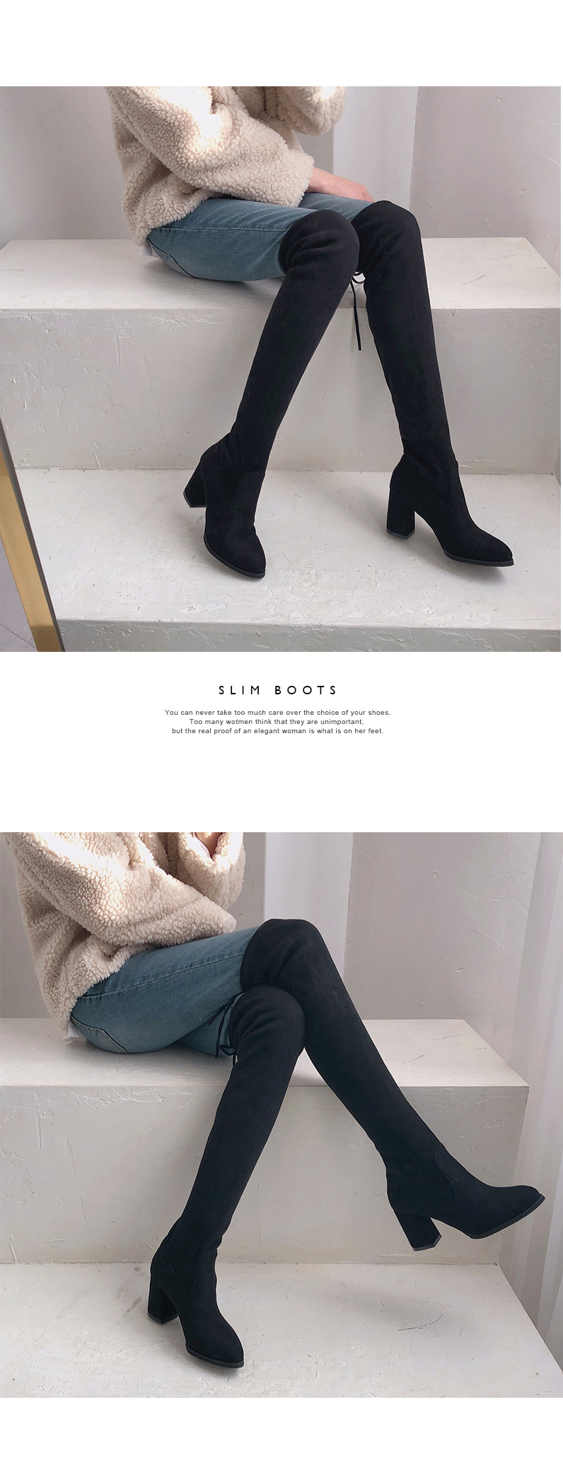 Suede kneehigh slim boots