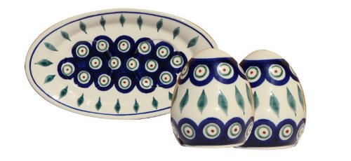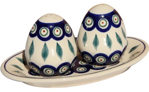 Polish Pottery Salt and Pepper Shakers From Zaklady Ceramiczne Boleslawiec #961-56 Peacock Pattern