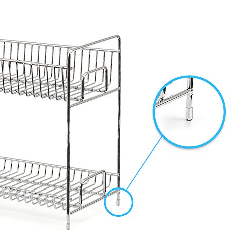 The EZOWare 2-Tier Free Standing Countertop Multi-Purpose Rack has wider taller shelves to ensure most spices, jars, cans, canisters, and condiments remain easily accessible when cooking or baking.