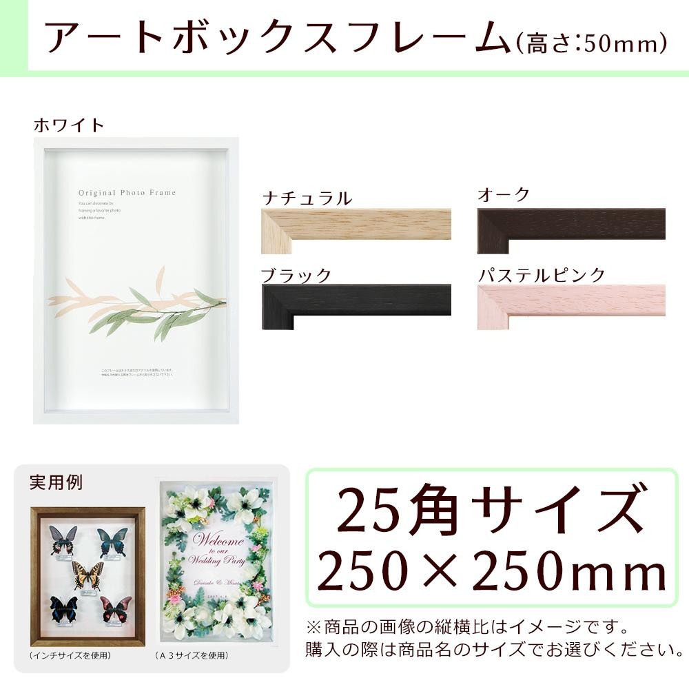 深さ39ミリの立体の木製額。フィギュアBOXとして、フラワーアレンジメントやウェディングボードとしても最適。 製造国:日本 素材・材質:フレーム:木、前面:ガラス 重量:約990g 仕様:規格:25角(内寸:250×250mm) 付属品:紐 ※サプライヤー直送品 ご注文後13~17営業日後の出荷となります【商品名】A.P.J. BOXフレーム アートボックスフレーム(高さ:50mm) 25角サイズ(250×250mm) オーク・1000016205