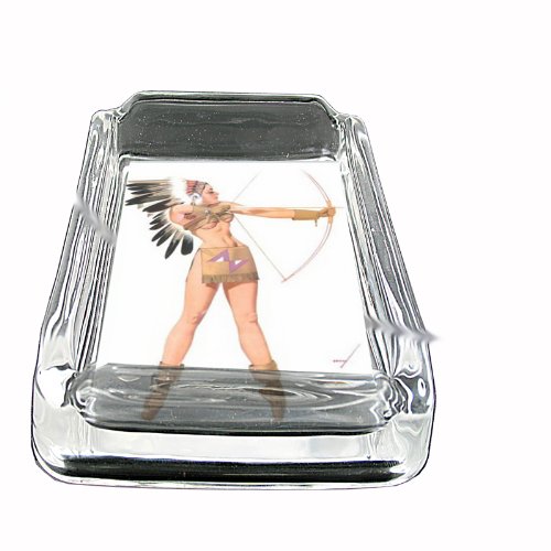 -. Title : Petty Girl Native American HOT Glass Square Ashtray D-246