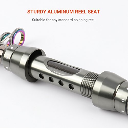 Sturdy aluminum reel seat with double locking structure is easy to assemble and disassemble, and is suitable for any standard spinning reel