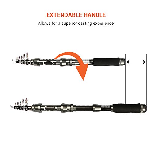 Extendable handle allows for a superior casting experience, and folds up for easy storage