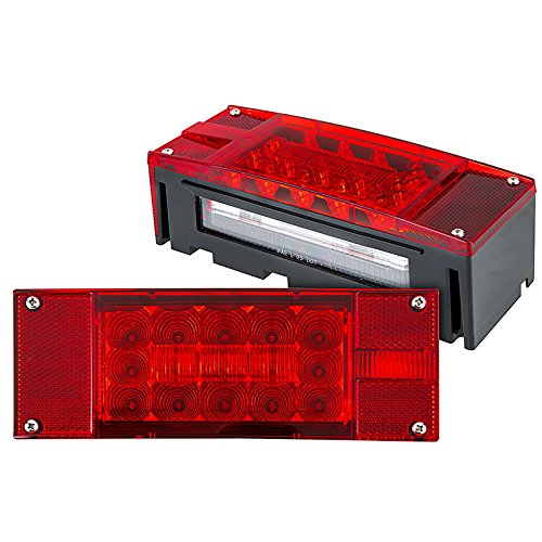 Submersible Trailer Rectangle LED Light Kit,Stop Turn Tail and License,Red/White