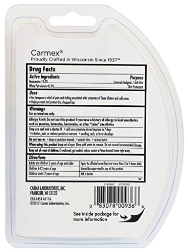 Studio : CARMA LABORATORIES INC Publisher : CARMA LABORATORIES INC Binding : Health and Beauty Product Description Treat the 7 worst symptoms of cold sores while minimizing the appearance or treatment of symptoms associated with cold sores. Product does not treat viral infections or heal cold sores. When used to help conceal. Individual results may vary. For external use only. Use only as directed. 0