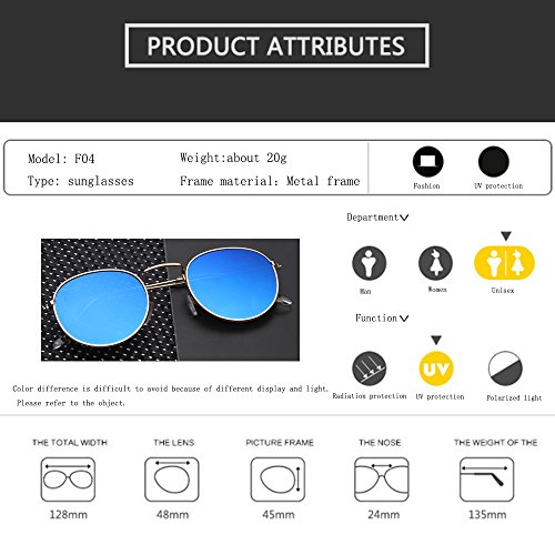 Mabalar Classic Metal Frame Retro Round Circle Mirrored Sunglasses Men Women Glasses
