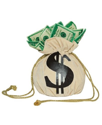 Product Description Ideal for any bank robber, hooker, pimp, or gold digger. Purse Money Bag - Costume Accessory consists of 100 percent polyester drawstring bag with a dollar sign on the front. 0