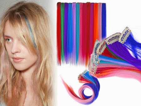 ingin tampil beda? tapi takut rambut rusak karena highlight rambut? coba ini aja! hair extension ini berbentuk klip rambut kecil, tinggal di pasang, jadi deh rambut highlight!