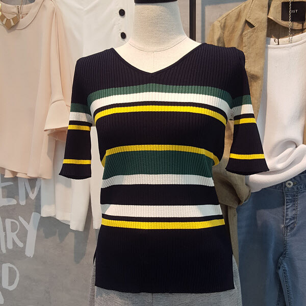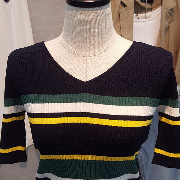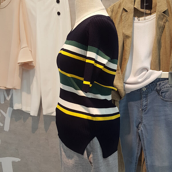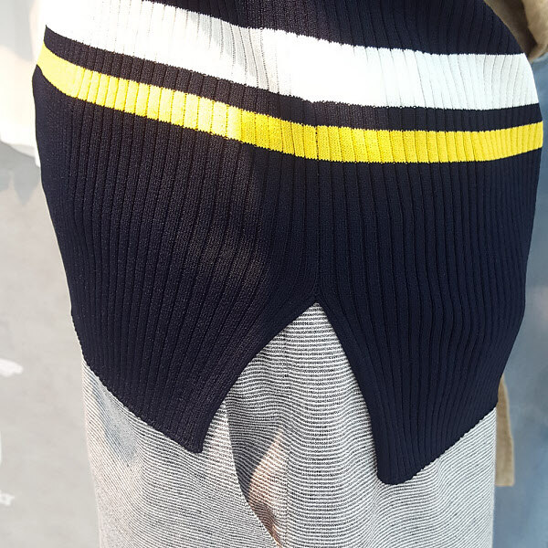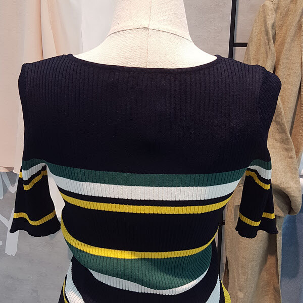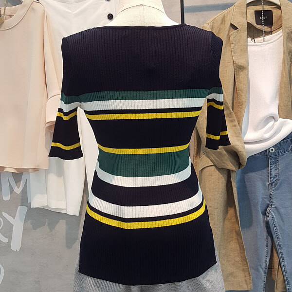 유니크한 컬러배색이 포인트된 스트라이프니트입니다