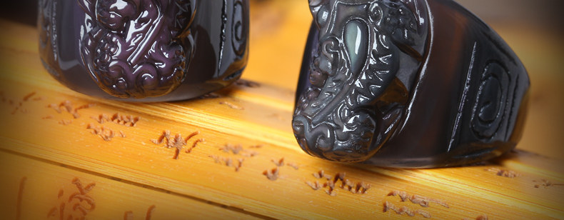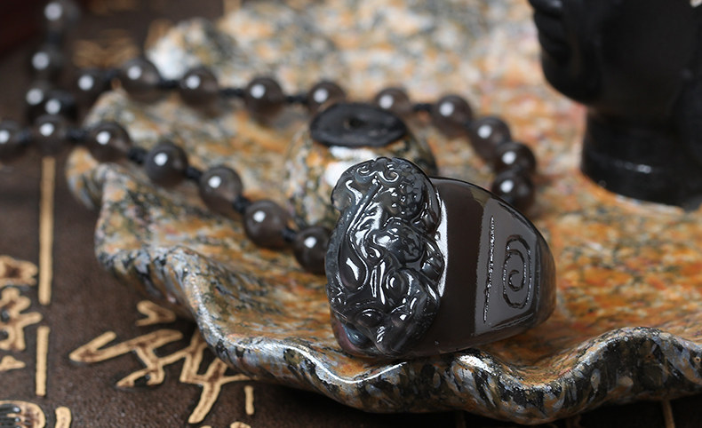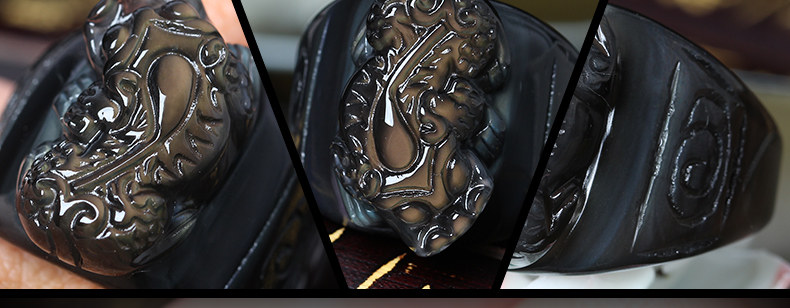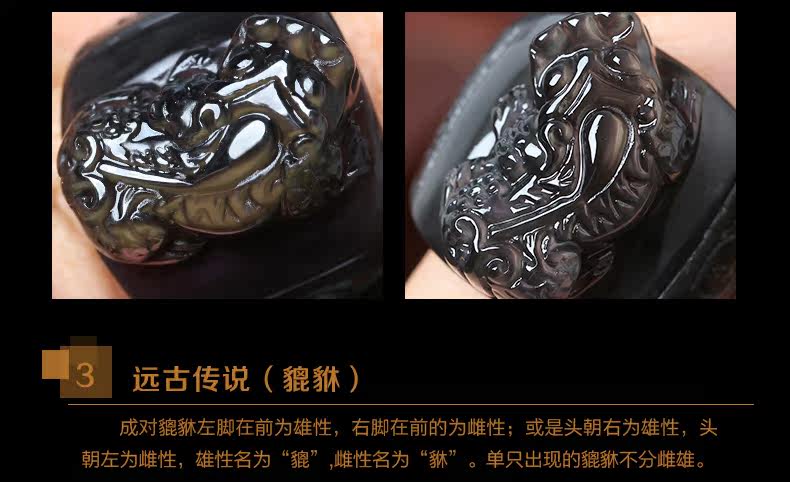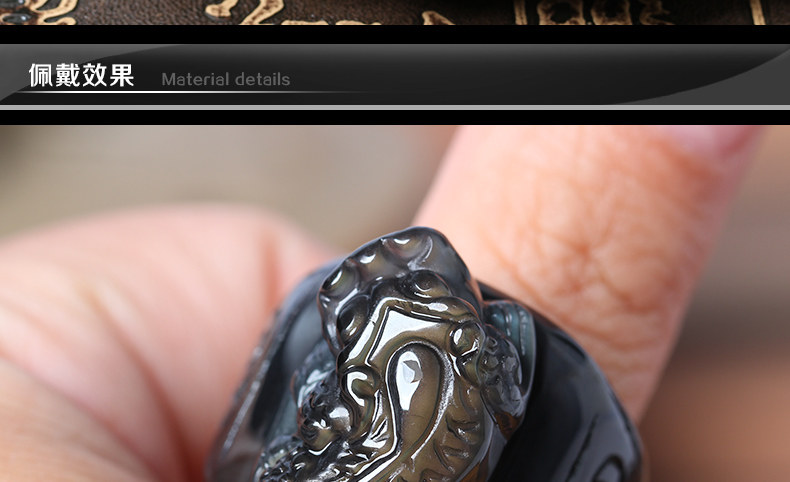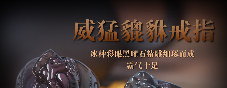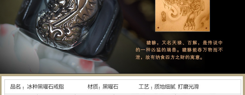 促销晶妞冰种黑曜石貔貅戒指彩虹眼效应水晶指环男士扳指精品礼品