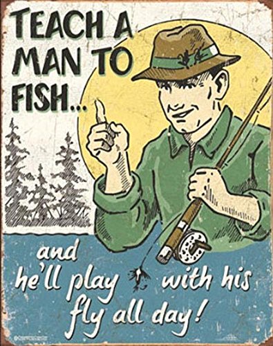 Teach a Man to Fish Fly Fishing Tin Sign 13 x 16in