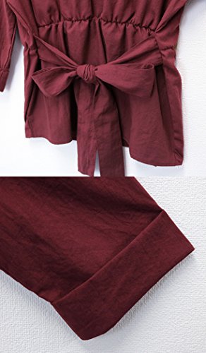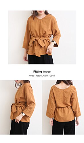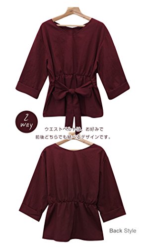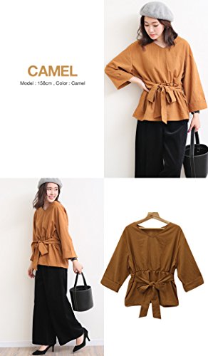 -. Feature : ウエストリボンが大人可愛いプルオーバー タイプの お洒落なブラウス。ドロップショルダーのワイドスリーブで ゆったり感がありながらも、ウエストリボンでキュッと引き締める、メリハリあるラインが魅力です! / くたっとした生地がこなれ感を演出し、緩やかな前後 Vネックも洗練された印象に。ウエストにゴムが施されて誰もが美しいシルエットで着こなせます。リボンはコーデに合わせて前後に結べる2Wayタイプ。 / 足元は パンプス サンダル スニーカー なんでも似合いますよ。ミモレ丈 フレアスカート タイトスカート スキニー デニム ワイドパンツ などボトムスも選びません!シーンに合わせて様々なコーデが可能。 / シンプルで誰にでも使いやすいトップスですので、10代 20代 30代 40代 かかわらず自分らしいコーディネートを楽しんでいただけますよ。ワンランク上の おしゃれ をお楽しみください。 / 【サイズ】M【カラー】キャメル、ボルドー、グリーン、ブラック【素材】ポリエステル100%※安心・安全・便利なAmazonプライム(P.R.Ime)のFBA倉庫発送で、24時間対応・お待たせしない 即日発送・送料無料にてお届けいたします。