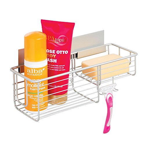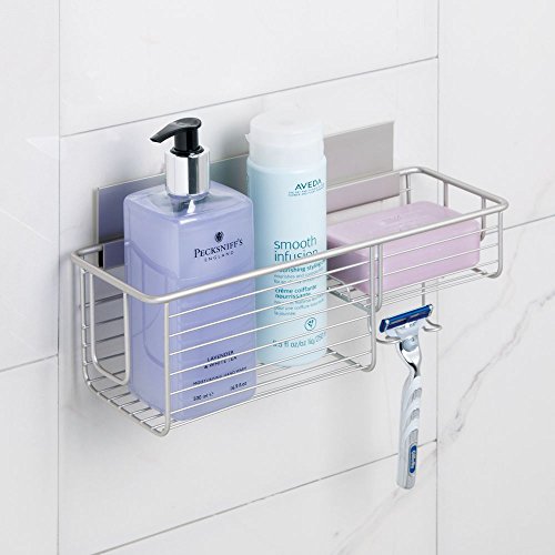 InterDesign AFFIXX, Peel-and-Stick Strong Self-Adhesive Classico Bathroom Shower Combo Basket for Shampoo, Conditioner, Soap - Satin/Nickel