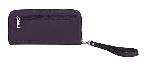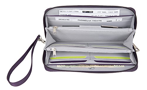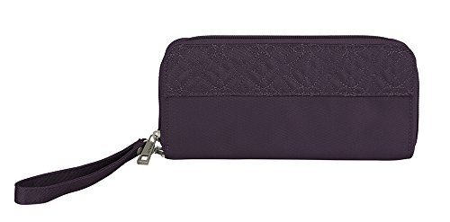 -. Binding : Apparel -. Brand : Travelon -. Department : unisex-adult -. Feature : Use it as a wallet or a wristlet / Includes 2 card slots, passport slot, currency slot / Holds smart phone and lipstick / Rear zip pocket hold coins, removable wrist strap, effective blocks RFID readers from capturing information / 8.5 x 4 x 0.75 -. Label : Travelon -. Manufacturer : Travelon -. NumberOfItems : 1 -. PackageQuantity : 1 -. ProductGroup : Apparel -. ProductTypeName : LAGE -. Publisher : Travelon -. Studio : Travelon -. Title : Travelon Signature Embroidered Single Zip Wallet