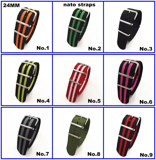 뜨거운 판매! 1 개 고품질 24 미리메터 나일론 시계 밴드 NATO 스트랩 zulu 스트랩 방수 시계 스트랩