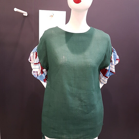 린넨소재이구요~ 단조로울스 있는블라우스가 소매포인트로 깔끔하연서도 스타일 리쉬해 보여요~~^^