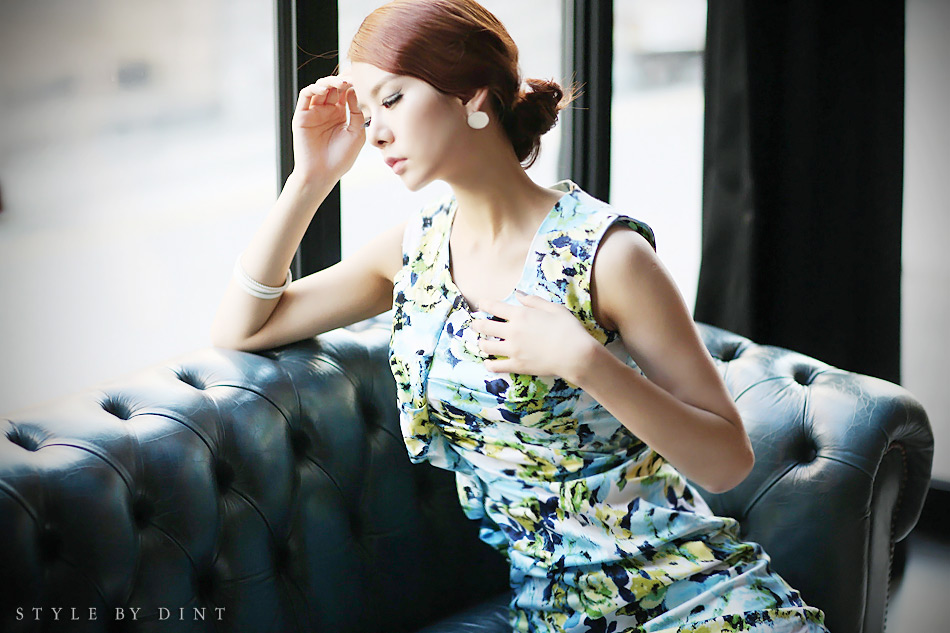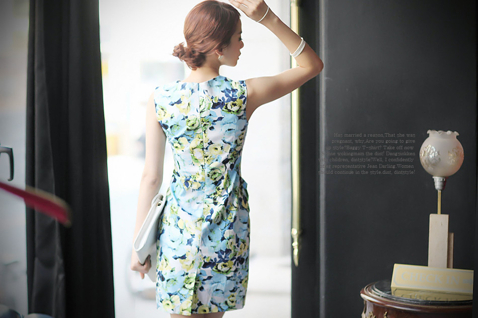 D940 플로럴 패턴셔링 원피스 -> 스카이mix