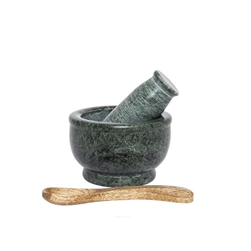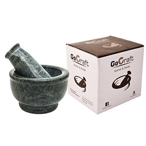 Studio : GoCraft Publisher : GoCraft Product Description This GoCraft green marble mortar and pestle is a great addition to your kitchen.This grinder is not limited to just food it is also usable for supplements and pills. The Marble structure and design is great for adding a touch of class to any kitchen. Simply place your item into the bowl-like mortar. Hold the pestle by the handle and, using a firm pressure, make a circular stirring-like motion to grind your item into a paste or powder. Harder items, like peppercorns, may need the surface cracked before it can be ground. With a firm but gentle pressure, tap the item with the pestle, then grind into the desired consistency. Perfect for Spices, Herbs, Tough Foods, Grains, Teas, Garlic, and Gingers. Hand wash only. 0