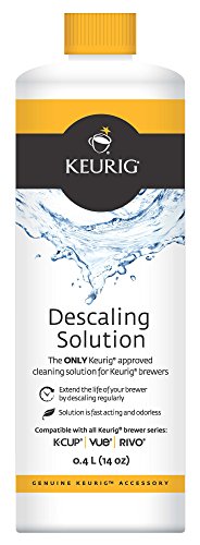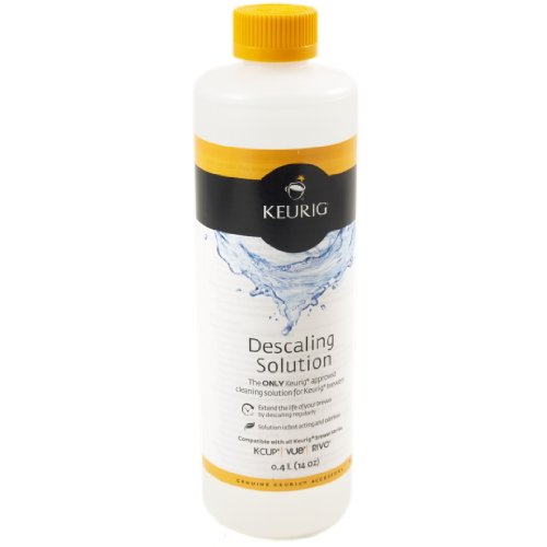 Improve the performance of your brewer with this set of three 14 ounce bottles of Keurig descaling solution. This citric acid based mixture works faster than white vinegar, and is odorless and biodegradable. Made in the USA, this descaler should be used every six to eight months to remove calcium and scale build-up that can hinder your brewer's efficiency. Invest in the only solution approved for use in your Keurig brewer and restore your brewer's health and longevity.2-1/4" diameter x 7-1/2" H, with a 14 ounce capacity