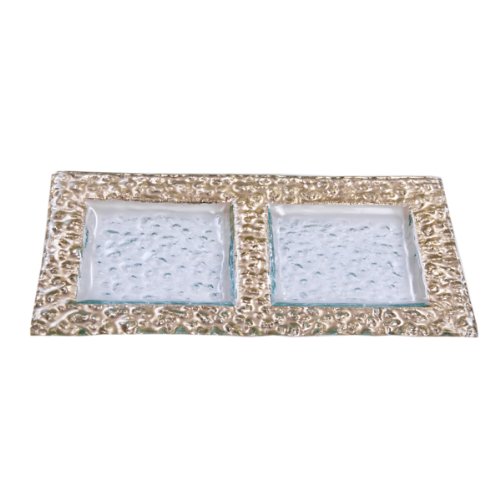 Home Essentials 7691G Cellini 2sectoin Rectangle Gold Border Plate