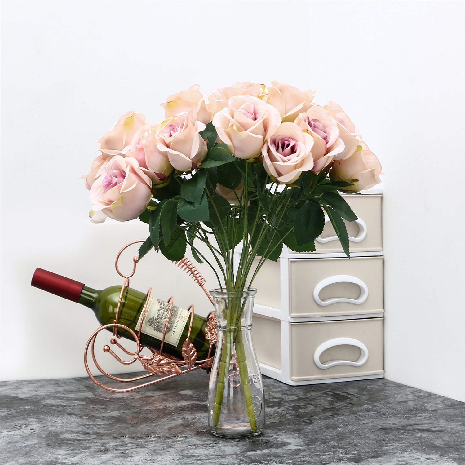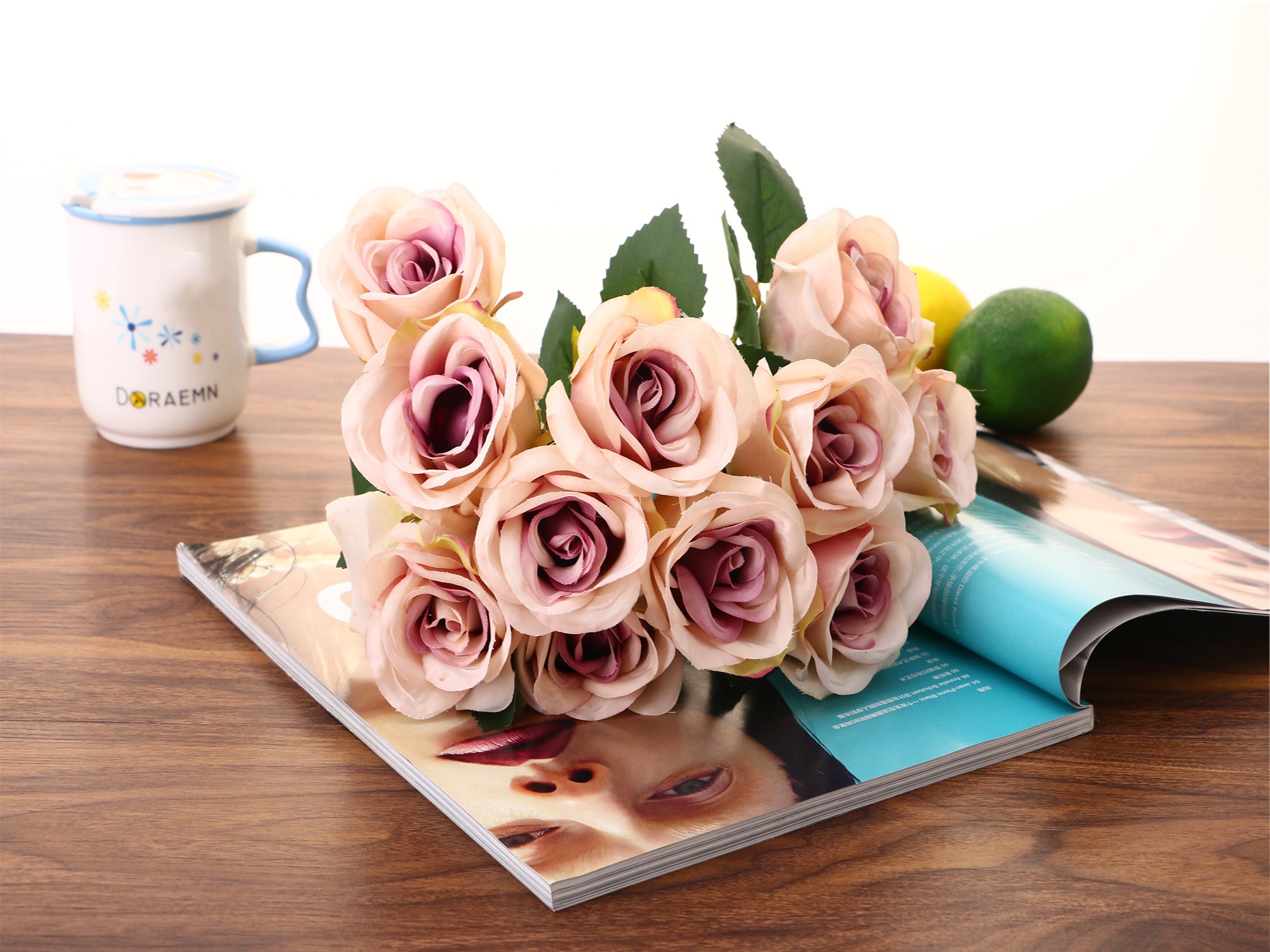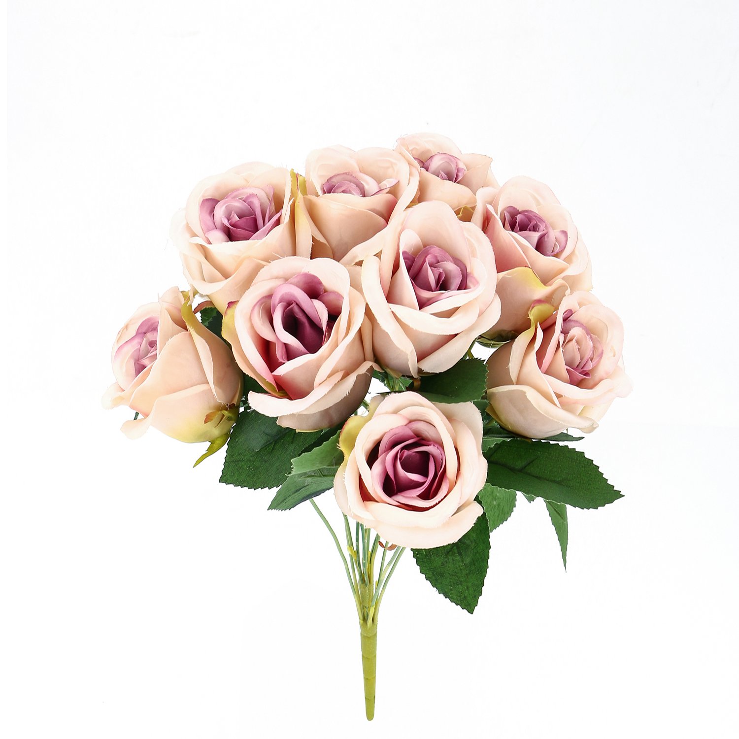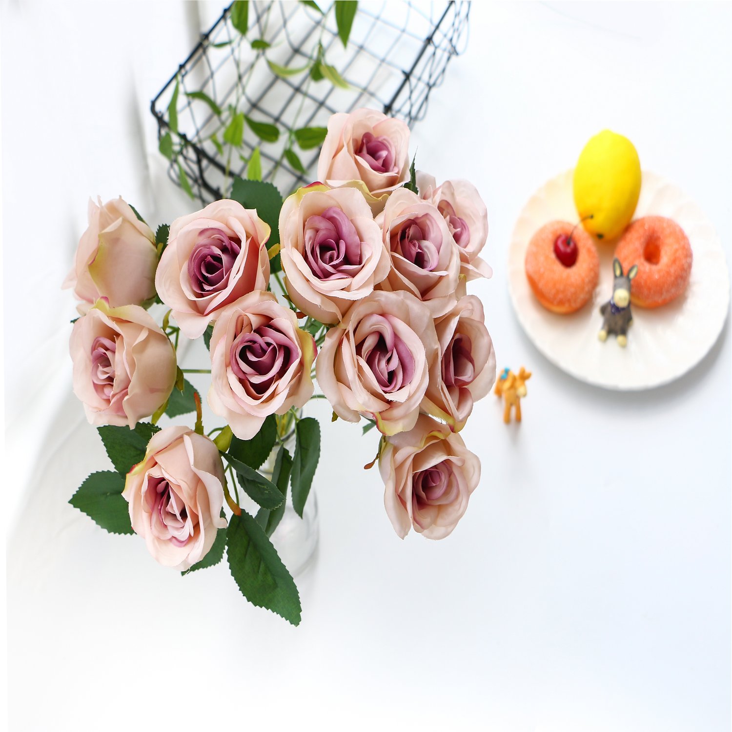 Rich branches and leaves, floral bouquets of ornate roses, vintage artificial rose silk flowers, pinkish purple flowers gave elegant air to the room, random matches with simple vase, your house