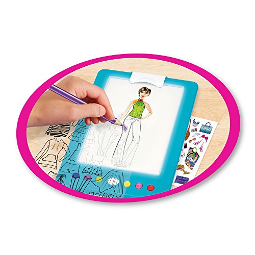Studio : Character Publisher : Character Binding : Toy Product Description Create cool fashion designs and light up your style with the LED fashion Lite studio. It’s a dry erase colour change light show and a trace and create design studio! can be used as a tablet or easel. Portable fashion at your fingertips. Comes with over 150 pieces including a variety of design and tracing sheets, markers, pencils, stickers, glitter, gems and sequins. 0