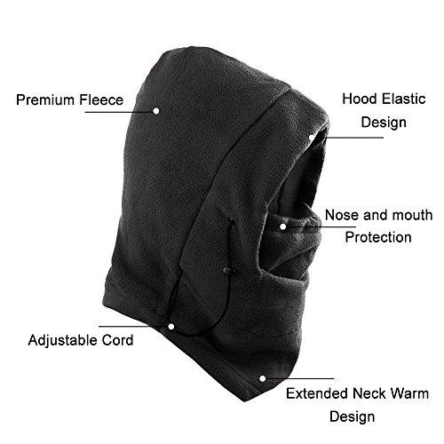 -. Feature : [HIGH QUALITY] Fleece fabrics soft comfortable and elastic, but not the ball. High fiber breather hole design, breathable but not ventilate, will not fog when wearing glasses. / [ADJUSTABLE] Adjustment cord on the brim for adjusting the size and tightness, fit for different shape of face. Prevent cold wind from entering. / [FULL PROTECTION] Full covers your head, neck, ears and all of your face except your eyes, leave them to adventure the world!! / [DIFFERENCE USES] Can be used as a full face mask, half face mask, open or closed balaclavas, scarf, hat, neck gaiter, tactical hood and dust cover. / [MULTIPURPOSE] Easy on and off. Perfect for walking the dog, skiing, snowboarding, hiking, camping, motorcycle/bicycle riding, fishing and other outdoor activities in the freezing cold winter.