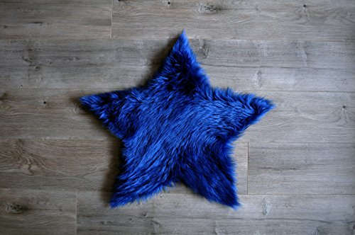 Machine Washable Faux Sheepskin Blue Star Rug 2' x 2' - Soft and silky - Perfect for baby's room, nursery, playroom (Star Small Blue)