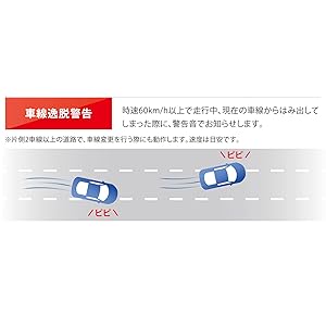 時速60km/h以上で走行中、現在の車線からはみ出してしまった際に、警告音でお知らせ。