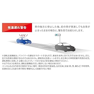 信号等で自車が停止中、前方の車両が発進し、自車の発進遅れを検出した場合に、警告音でお知らせします。