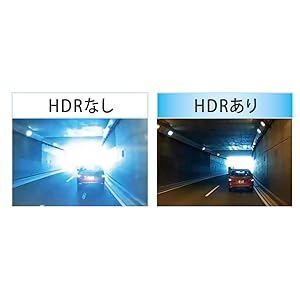 逆光やトンネルの出入り口など明暗差が激しい環境時におきる「白とび」や「黒つぶれ」を抑え明瞭な映像を記録。DRV-410は、露出を変えた複数の撮影画像を合成するHDR(ハイダイナミックレンジ)、DRV-610は、ひとつの映像から明暗差を解消するWDR(ワイドダイナミックレンジ)を採用。※3M(メガ)記録モード時はHDRは動作せず。