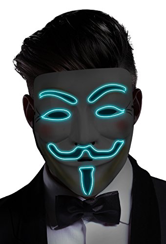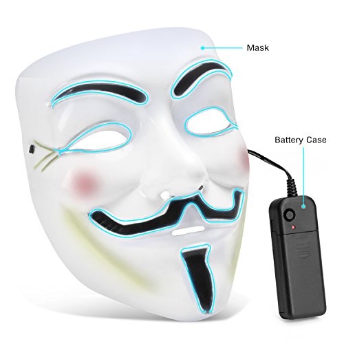 Zooawa EL Wire LED Mask, Light Up Luminous Glowing Cool V for Vendetta Mask Party Favor for Christmas, Halloween, Cosplay, Carnival, Masquerade, DJ Show - Iceblue