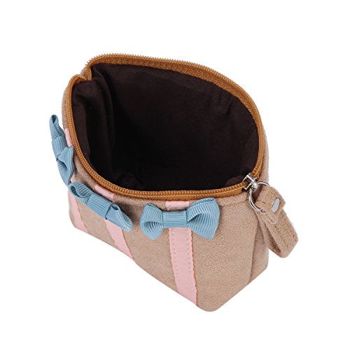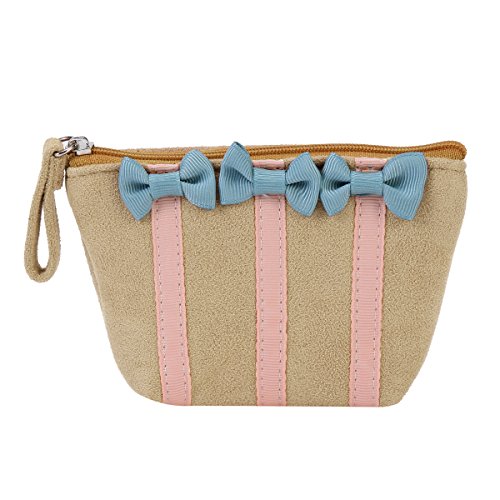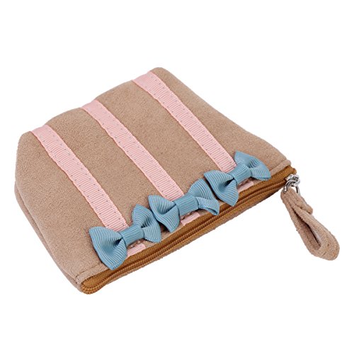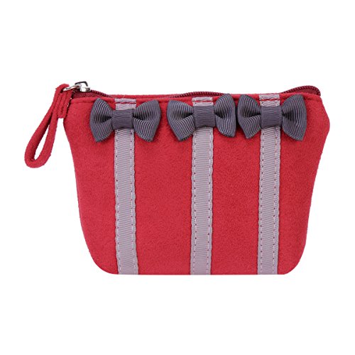 Product Description Organize your coins, cash, keys, or other small items inside this compact pouch. The medium coin purse is made from flannelette and features an bowknot that adds a unique touch to the overall look. This coin purse has a compact shape with a secure top zipper closure and a fully lined interior that offers storage for cash, credit cards, photo ID, loose change, or other small items.Measurement is app 13x10x1.5cm(5.12x3.94x0.59inch). 0