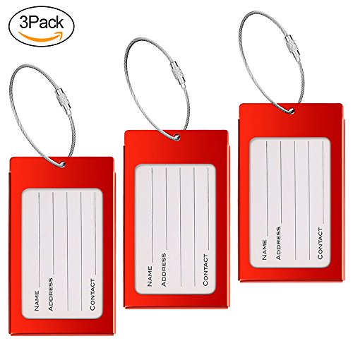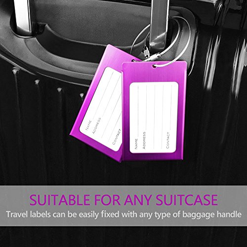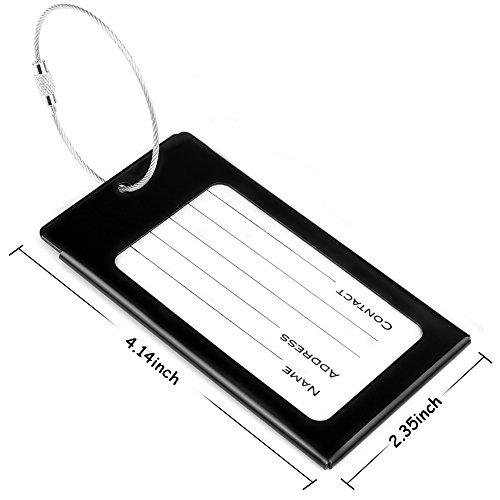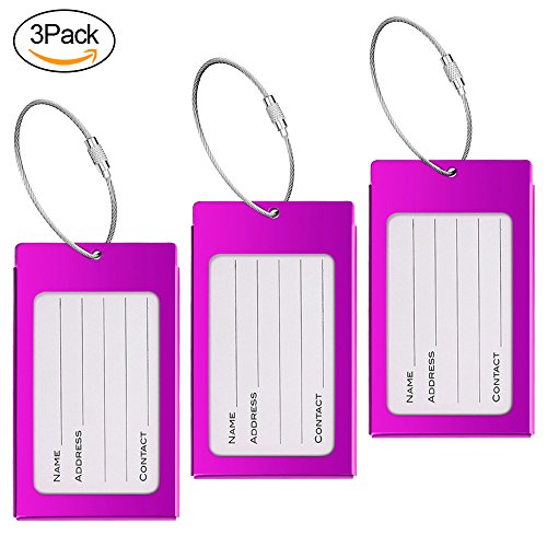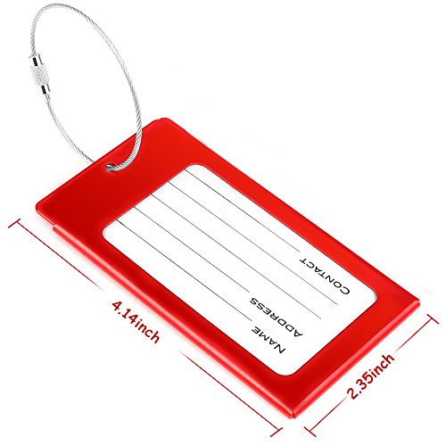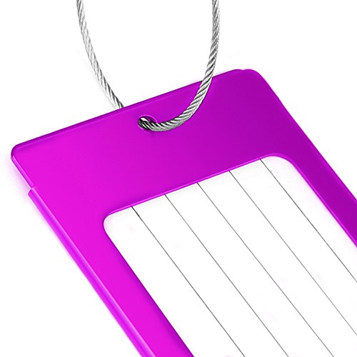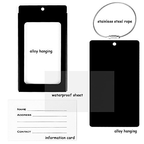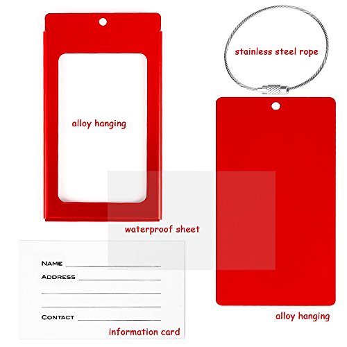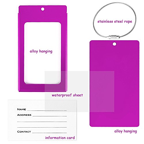 PRODUCT SPECIFICATIONS : Material : Aluminum Alloy Size: 2.36 x 4.13 x 0.15 inch Color : Bright Red Colors,Purple Colors and Black Colors Each tag include: Aluminum alloy case,Information card,waterproof sheet and come with a stainless steel string and a screw connector for closely connecting your luggage ?????????????????????????? ? WHY DO YOU NEED IEKA LUGGAGE TAGS ? Travel bag are linked to multi-function luggage tag,You can write your NAME,ADDRESS and TEL on the name card, and also can remind people not to take the wrong, If others take the wrong, and can also according to your luggage tag information on the contact with you, in order to get your luggage back in time Luggage tags only need to use ball point pen to write your information directly on the card,If you wish to hide your information,simply change the information card to the opposite side and put it in,and information will not be shown to all,protect your personal privacy while provides easy luggage tagging,has good confidentiality. Don't forget these tags can be employed for a Variety of Uses including your gym bags, suitcases, spinners, golf bags, musical instrument cases, school bags,baby strollers,and can also be used for children's school bags to facilitate children to identify their school bags. ???? Click the ""Add to Cart"" button above to get your new label! 0 |