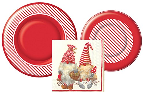 Christmas Gnomes and Candy Cane Stripes Party Supplies: Bundle Includes Plates and Napkins for 8 Guests