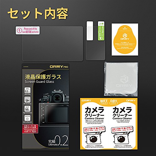 -. Feature : 【日本製素材】旭硝子製の極薄0.2mm厚強化ガラスです。業界最高レベルの9H硬度を達成し、傷が付きにくいです。衝撃を緩和し、カメラ画面のダーメジを最低限まで抑えます。 / 【反射防止】反射防止(AR)コート加工を実施しており、アウトドア撮影の視認性を向上させます。 / 【極高透過性】透過率98%で、カメラ画面の美しさをそのまま、撮った写真や動画を損なわない再現できます。 / 【汚れに強い】表面に特殊なコーティングを実施しております。指紋、油、水など汚れが簡単に拭き取ります。(清掃用クリーニングクロス付属) / 【付属品】ORMYカメラクリーナー、ORMYホコリ除去シール、ORMYクリーニングクロス。