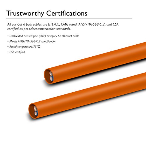 High Performance Cat 6 cable, ETL Listed, Bulk Ethernet Cable provides universal connectivity for wiring your home or office for high-speed network, in-wall rated (CM)