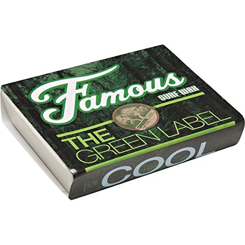 -. Feature : One (1) bar of Famous Surf Green Label Cool Organic Surf Wax from Famous Surf / For water temps between 58F-68F (14C-19C) / Easy to apply and smells great / Helps keep your feet planted firmly on your board / Made with Famous Surf's tried-and-true formula