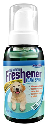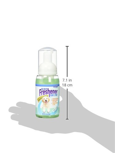 -. Feature : Instant, long-lasting fresh dog breath without brushing - pet bad breath be a symptom of periodontal disease. Removing it could potentially increase your dog's longevity. Our formula requires no dog toothbrush or toothpaste. Even if you brush your dog's teeth, this product could enhance your efforts and results. / Dental care solution formulated to reduce tartar and plaque buildup - our unique formula blend features aloe vera extract which is scientifically proven to help soften tartar for easier removal. It also strengthen your pet's immune system, minimise infections, remove bacteria and promotes detoxification. / All natural USA made formula - Highest quality natural safe ingredients to remove and prevent forming of mouth bacteria, it also reduces redness and inflammation of gums. An all around potent teeth cleaning formula for dogs better health and immune function. / Unique pump application system saves you money - our pump system emits foam which covers larger area of teeth and gum especially beneficial for larger dogs while other trigger spray use up very quickly. Our pump foam spray is best for efficiency and saves you money. / 90 day "fresh breath" risk free guarantee - try the whole bottle, if your pet does not experience better breath or healthier oral health, just let us know and we will give you a full refund, no questions asked.
